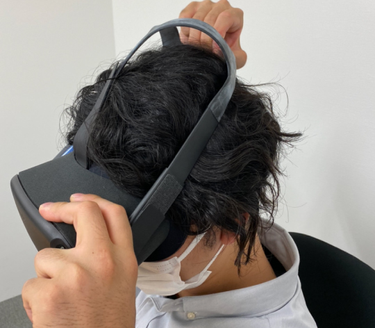 ベルト部を後頭部に持っていきベルトの長さの調整を行います。コンテンツのスタート