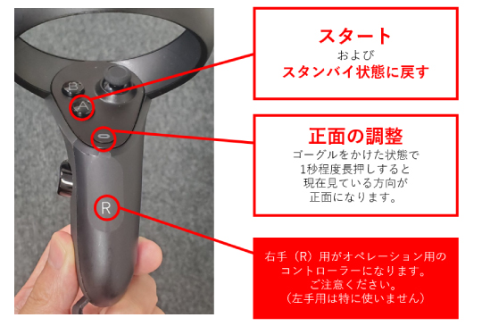 スタッフ側でコントローラーを操作して、開始します。右手(R)のAボタンを長押しすることでスタートします。