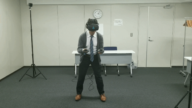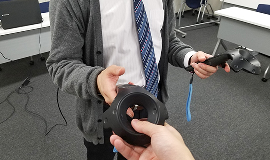 | 設営手順 | ①三脚を配置し、先端にセンサーを設置 ②HTCVIVEとPCを接続 ③HTCVIVEのガイドに沿って、プレイエリアを設定 |